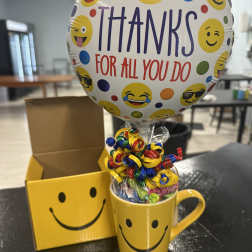 Price: $16.99Thank you mug with candy and balloon